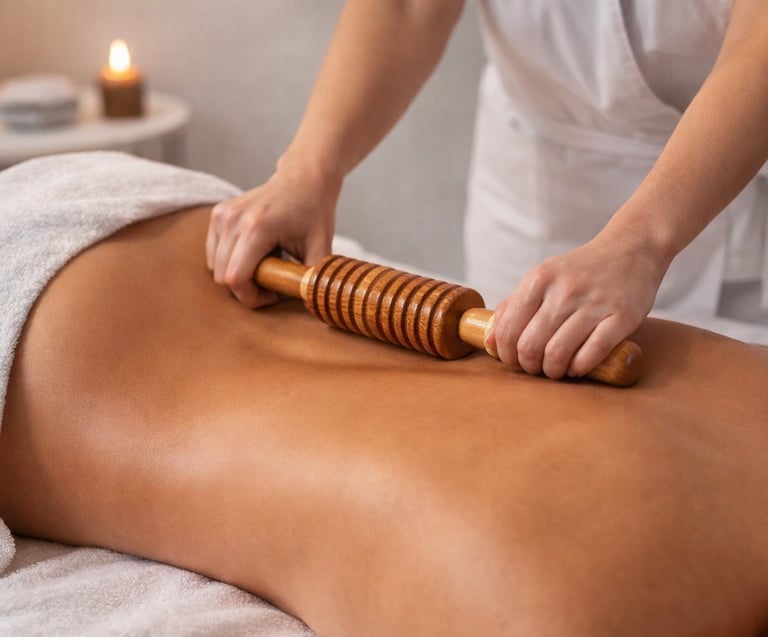 Incluye 45 minutos de masaje con maderoterapia colombiana y de regalo 15 minutos de cavitacion. Moldea y reduce celulitis.